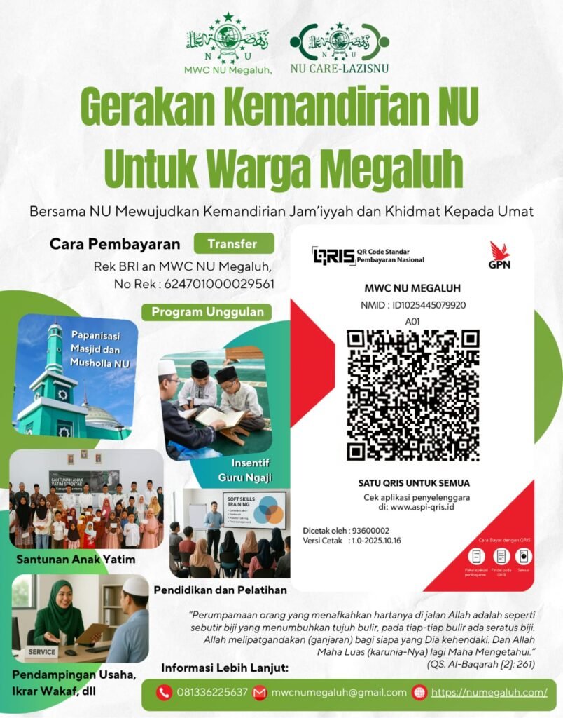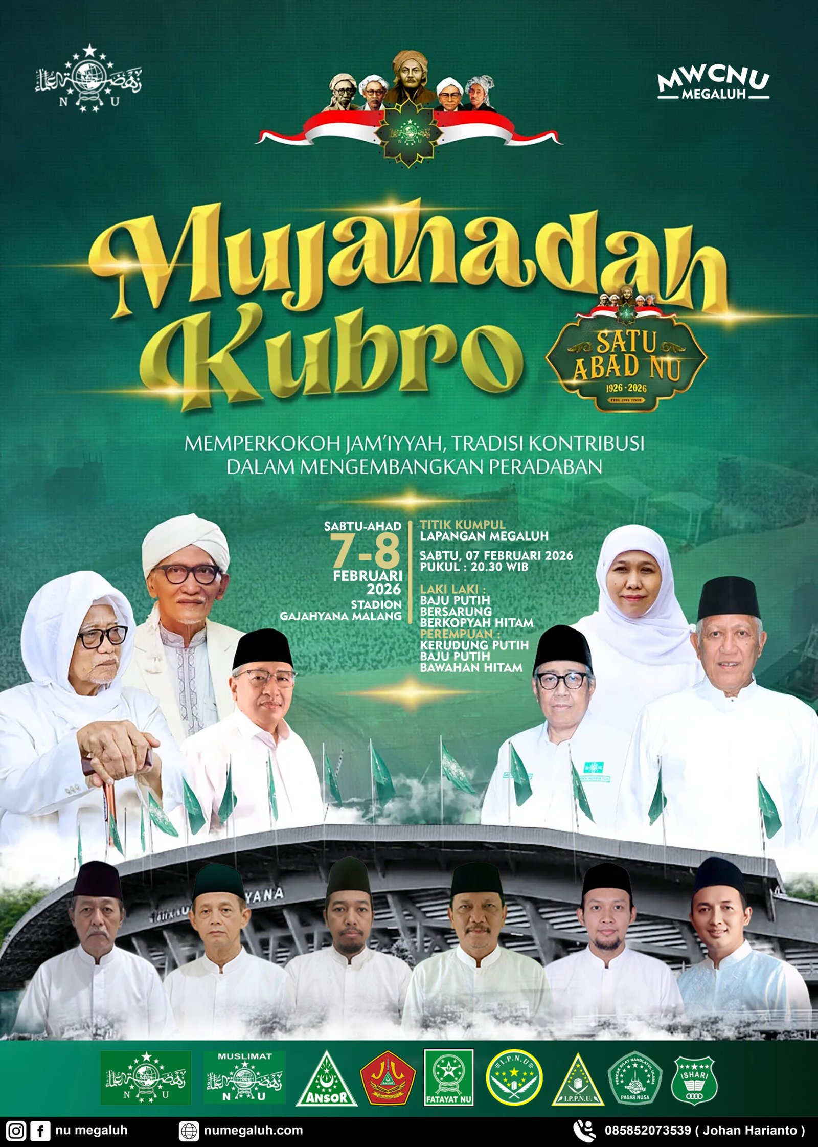 Berita NU Fatayat NU Megaluh GP Ansor Megaluh IPNU-IPPNU Megaluh Muslimat NU Megaluh Pagar Nusa Megaluh MWCNU Megaluh Siap Putihkan Stadion Gajayana dalam Mujahadah Kubro Satu Abad NU Januari 30, 2026 Purdianto Efendi NUMegaluh.com – Majelis Wakil Cabang Nahdlatul Ulama (MWCNU) Kecamatan Megaluh bersiap mengerahkan jamaah untuk menghadiri perhelatan akbar Mujahadah Kubro yang akan digelar di Stadion Gajayana, Malang. Kegiatan ini merupakan bagian…